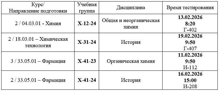 группа X-12-24 - Общая и неорганическая химия - 13.02.2026, начало в 8:20, ауд. Г-402